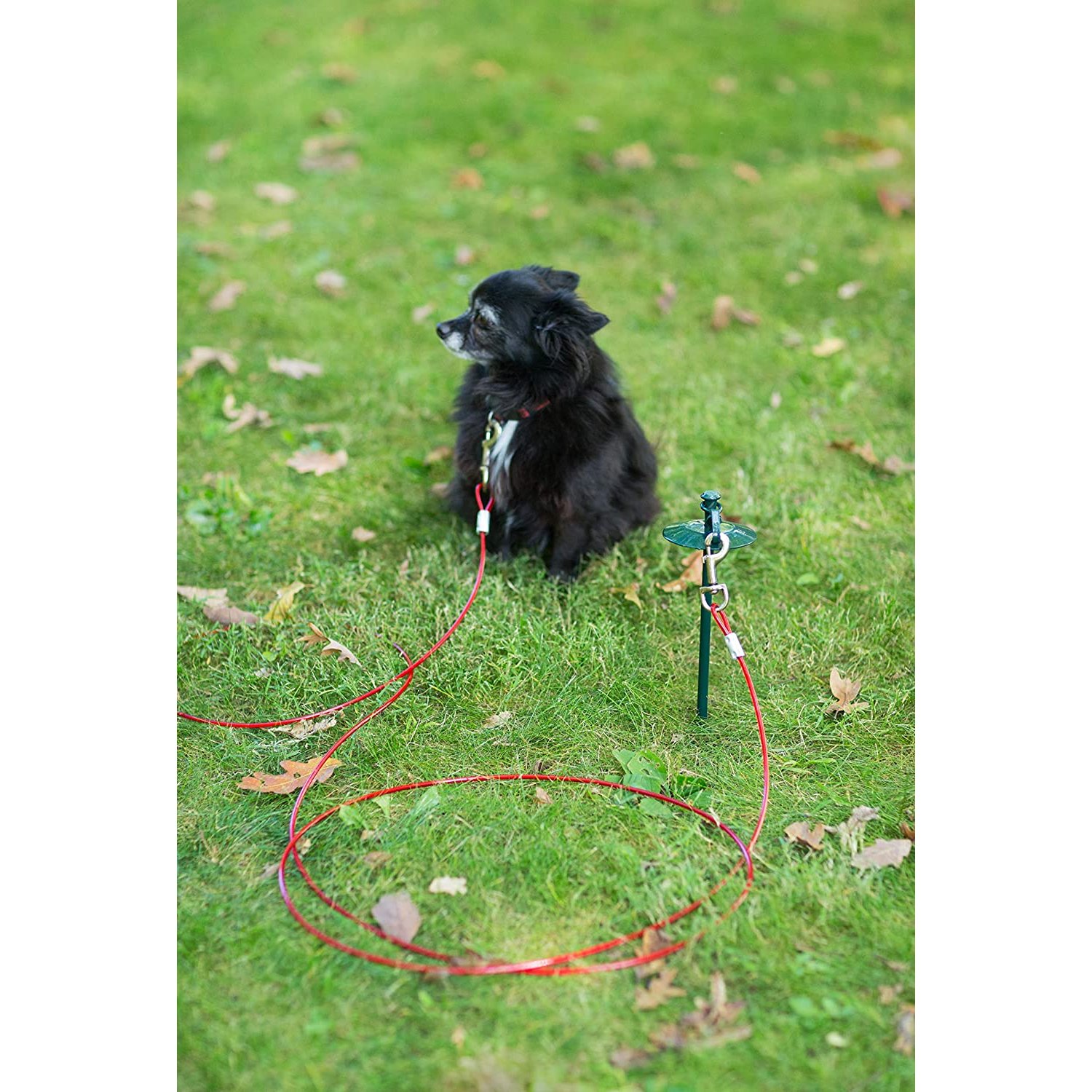 Prevue Pet Products medium-duty 24ö Dome tie-out stake with 12' cable 2123 is designed for dogs up to 130 lbs. Solid steel powder-coated stake features a do me top head with anchor swivel tie-out attachment. Double welded arrowhead tip installs easily in all types of soil. Includes medium duty aircraft grade wound-steel cable cased in high visibility Red vinyl to ensure your dog stays safe and secure. Stake measures 24ö long x 10.9 mm in diameter. Cable measures 12Æ long.