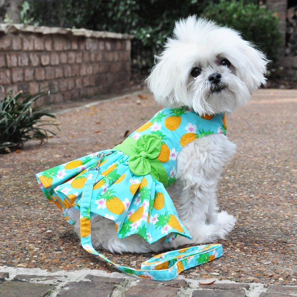 Pineapple Luau Dog Harness Dress with Matching Leash