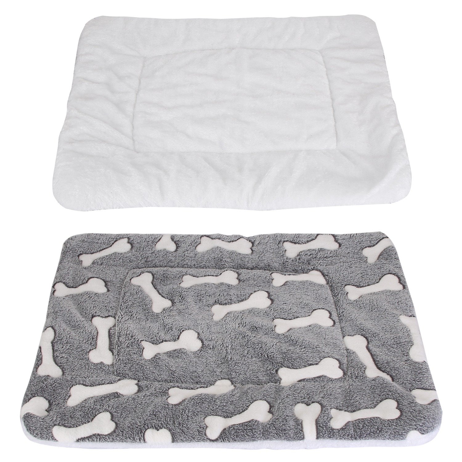 Home > Dog Bed Mat Comfortable Flannel Dog Crate Pad Reversible Cushion Carpet Machine Washable Pet Bed Liner with Bone Patterns Dual-Side Usage for M/L/XL D