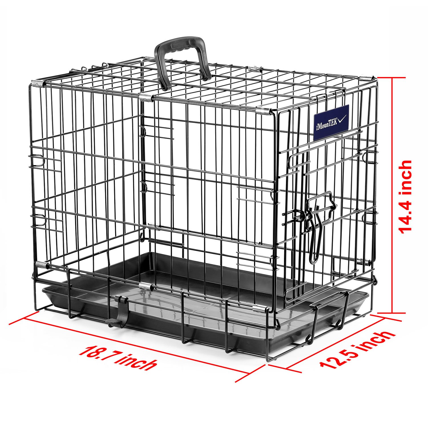 Our iMounTEK dog crate with large swing-open door on the front for front entry, which is ideal for both puppies and adult dogs come in and out conveniently. The two slide-bolt door latches for increased safety and security. Owing sturdy foldable metal construction, easily folds flat for easy storage or portability, The bottom of the crate comes with a plastic tray so that the dog’s paws cannot slip through, and the tray is removable and easy to wash..