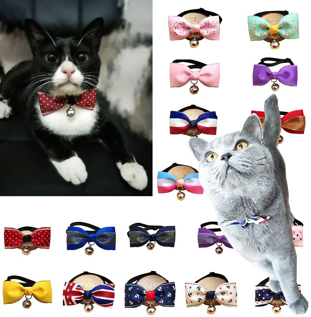 Stylish cute pet collars, bells and bow ties, use them to decorate your cute pet dog or cat, making them look more cute and interesting. Pet bells will oxidize and discolor after a long time. Suitable neck circumference: 15-35cm(5.9-13.8 inches). Recommended for dogs or cats from 2.5 to 6 kg. Cute and colorful design, make your pet look fashionable and distinctive. It is safe,comfortable for your pets to wear and doesn't irritate your pet's necks. Suitable neck circumference: 15-35cm(5.9-13.8 inches). Adjustable. It can be used on cats and also small dogs. Perfect for everyday use, weddings, holidays and party, make you pets lovely.