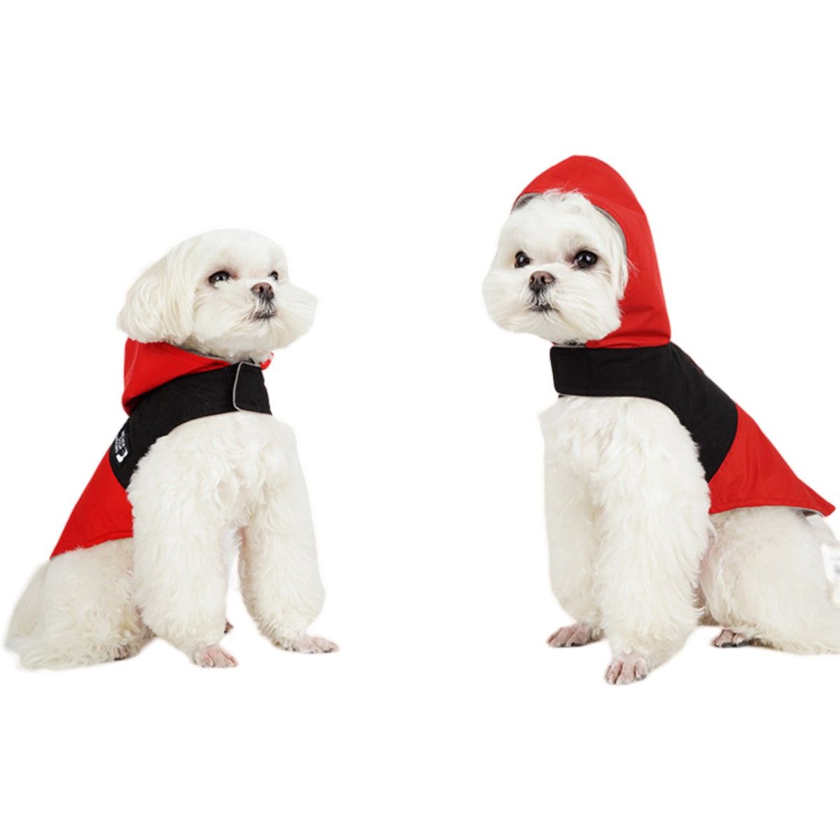 1.Water Resistant Material: Our dog rain jacket was made by polyester with water resistant coating, keep your dog dry, warm, comfortable and FASHION when walking in rainy or snowy days.